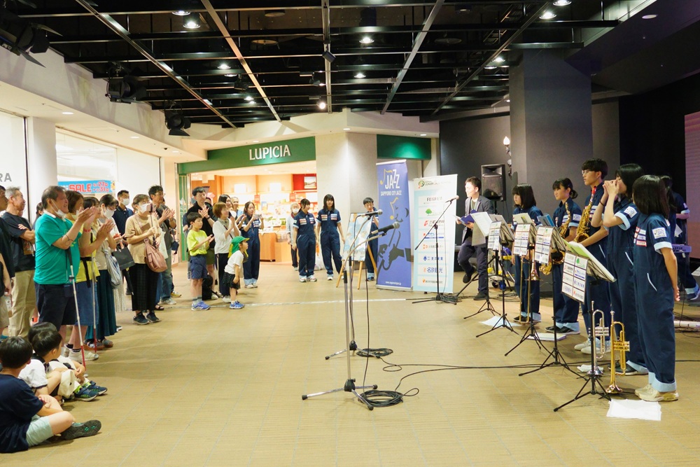 さっぽろ地下街オーロラプラザで開催されたサッポロ・シティ・ジャズ2025『キックオフライブ』に、サッポロ・シティ・ジャズのPR大使として中学生クラスが出演しました。