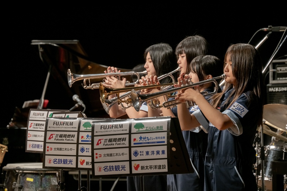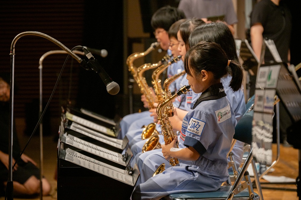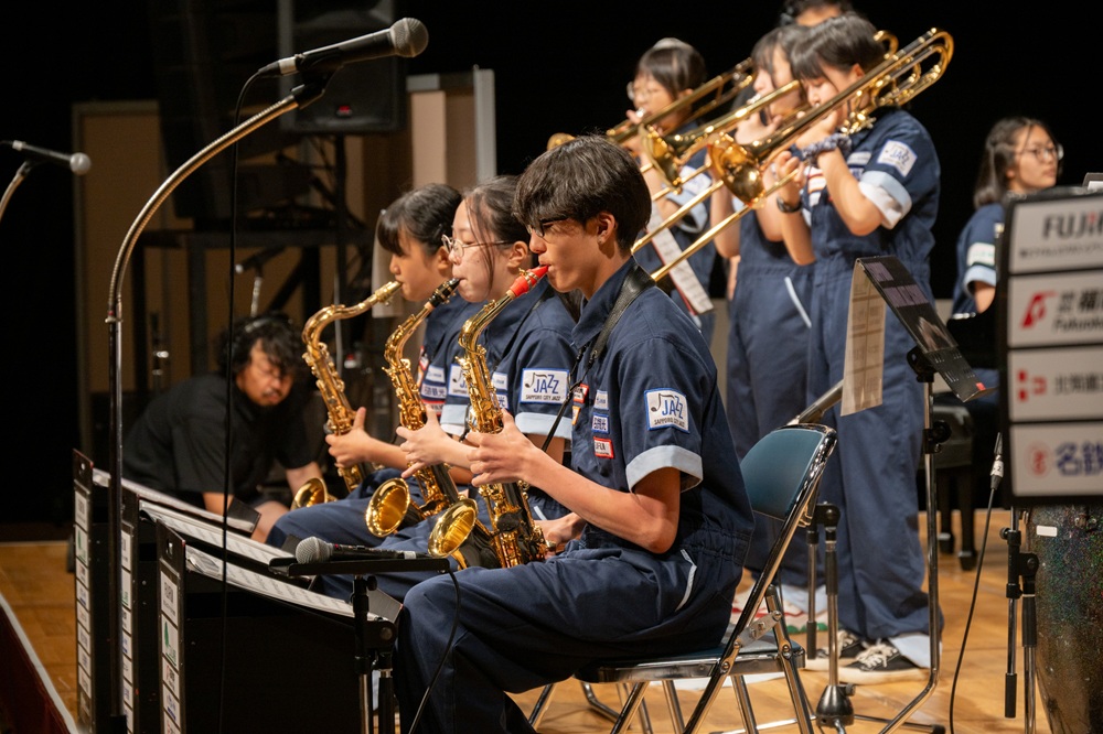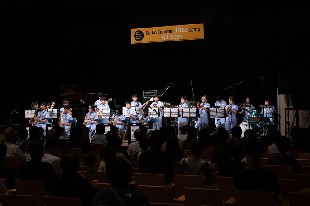 アートホール アリーナにて開催された『Seiko Summer Jazz Camp All Stars 2025 in Sapporo』に、オープニングアクトとして両クラスが出演しました。小学生クラスは2曲披露し、演奏した「Tequira」では「テキーラ!」の元気な掛け声で会場を沸かせました。中学生クラスは3曲を披露、本格的なジャズサウンドで会場を魅了しました。その後、前日のワークショップで講師を務めていただいた先生方のライブを聴かせていただきました。また、中学生クラスがオープニングアクトで演奏した「SANDU」を先生方がサプライズで披露してくださり、素晴らしい演奏とパフォーマンスを堪能しました。