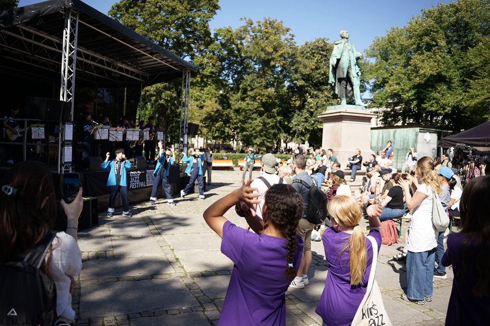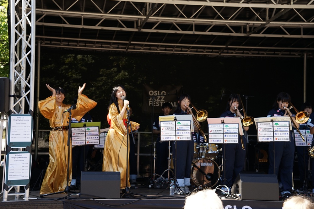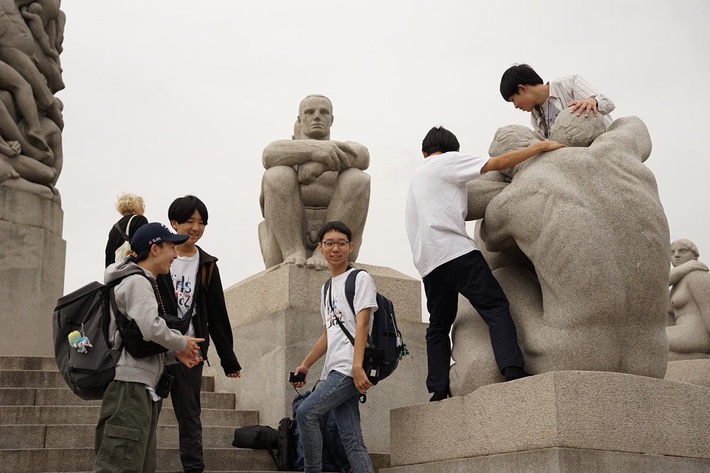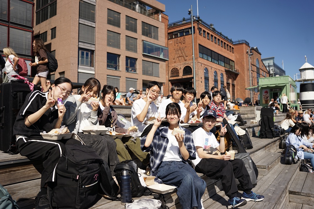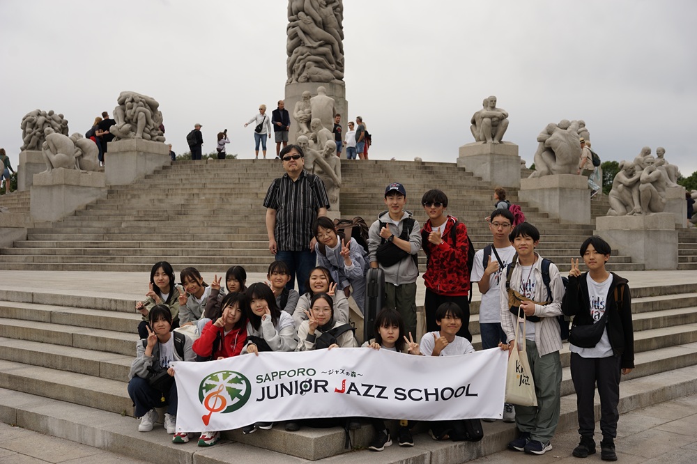 8月8日から14日の一週間にわたり、国際交流事業にて中学生クラスがノルウェ―・オスロ市を訪問しました。毎日行われるライブやセッションに加え、各国の子どもたちとの交流、ヴィーゲラン彫刻公園の観光や在ノルウェー日本国大使館表敬訪問など、様々な経験をし、大きく成長する機会となりました。ライブでは北海道の「ソーラン節」を踊りとともに演奏したり、「マツケンサンバⅡ」を着物を着用して英語で歌ったりと、ノルウェーの皆さんに日本の文化の魅力をお伝えすることができました。天候にも恵まれ、忘れられない一生の大事な思い出となりました。