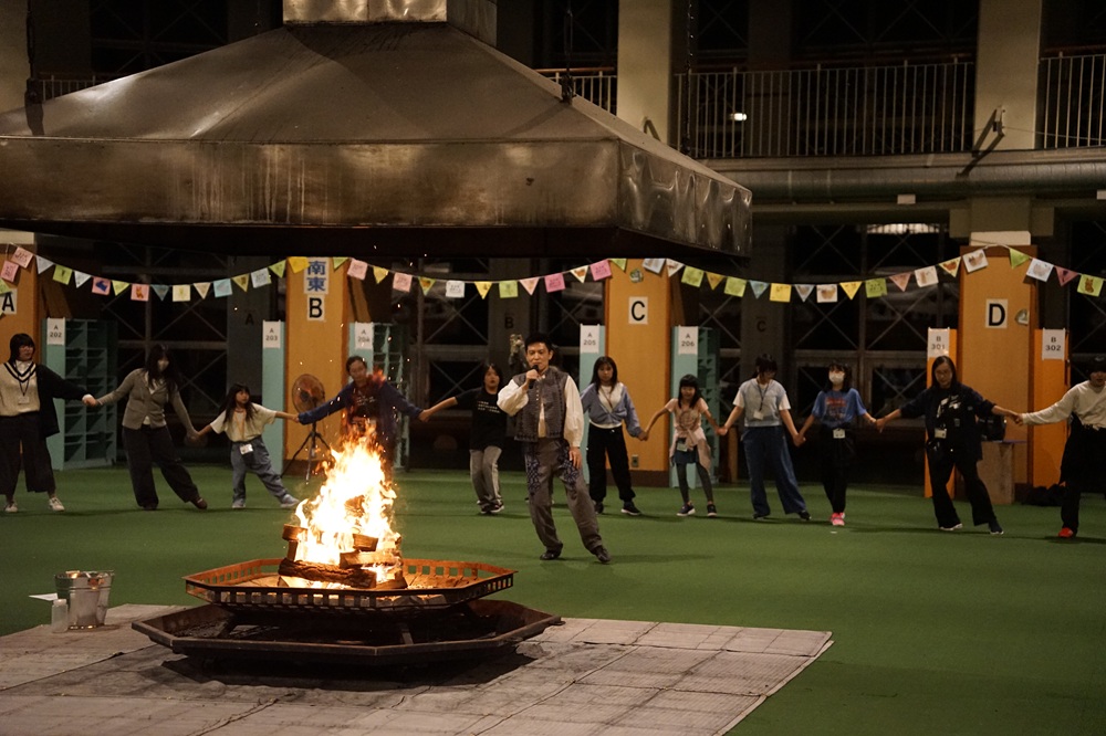 1日目はまず課題曲を合奏し、ともコンに向けて思いをひとつにし、その後はパートごとに分かれ、各楽器の専門講師から指導を受けました。宿泊先の滝野青少年の家に移動後は皆で一緒にご飯を食べ、雨のため室内でのキャンプファイヤーを囲みフォークダンスで大いに盛り上がりました。