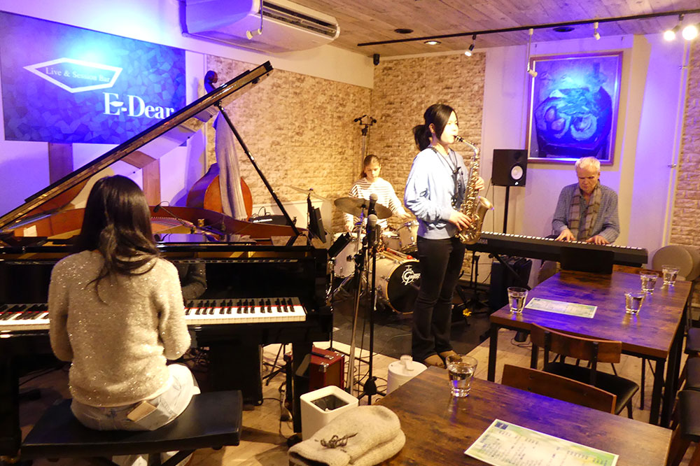 24日のライブバーJazz915、25日のLive & Session Bar E-Dearで行われたImprobasenのライブにはスクール生たちも観客として訪れ、終演後はセッションにも参加しました。